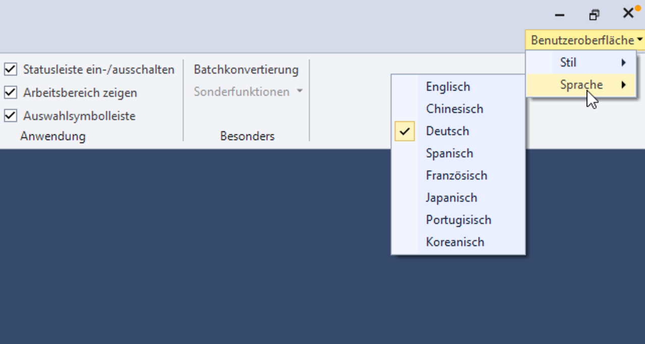 Wenn Sie lieber die englische Oberfläche nutzen möchten, können Sie die Sprache hier umstellen: