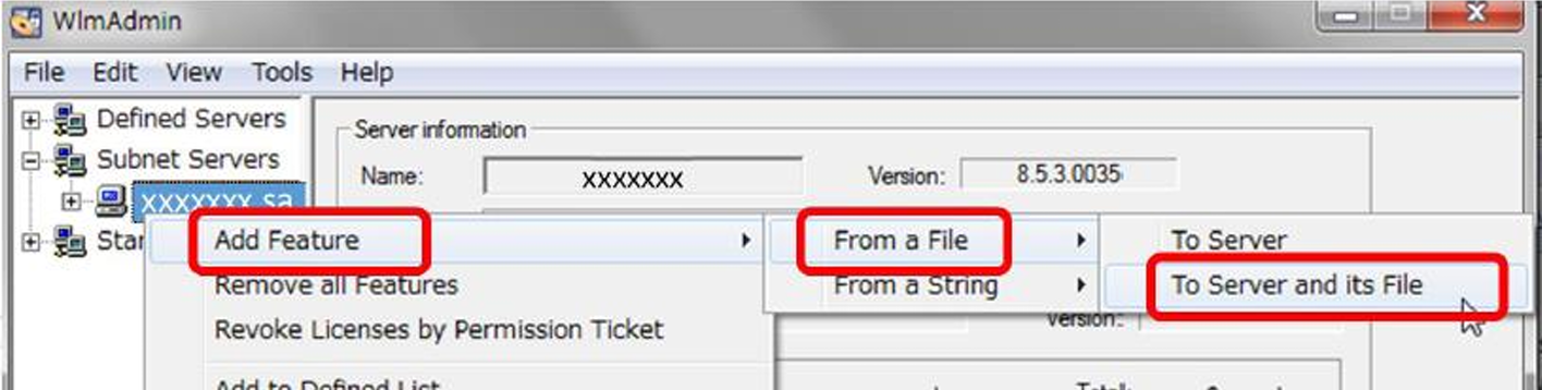 Wählen Sie [Add Feature] – [From a File] – [To Server and its File]